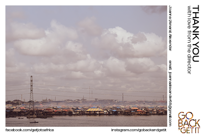 Go Back & Get It A6 Thank You Cards using favourite photographs taken in Nigeria whilst making the film. All designed by Joanna Alexander for the documentary specifically.