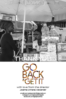 Go Back & Get It Movie Poster was designed by Joanna Alexander using photography taken in Nigeria whilst making the film.